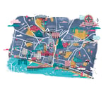 High quality print of an illustrated hand drawn map of Brighton.