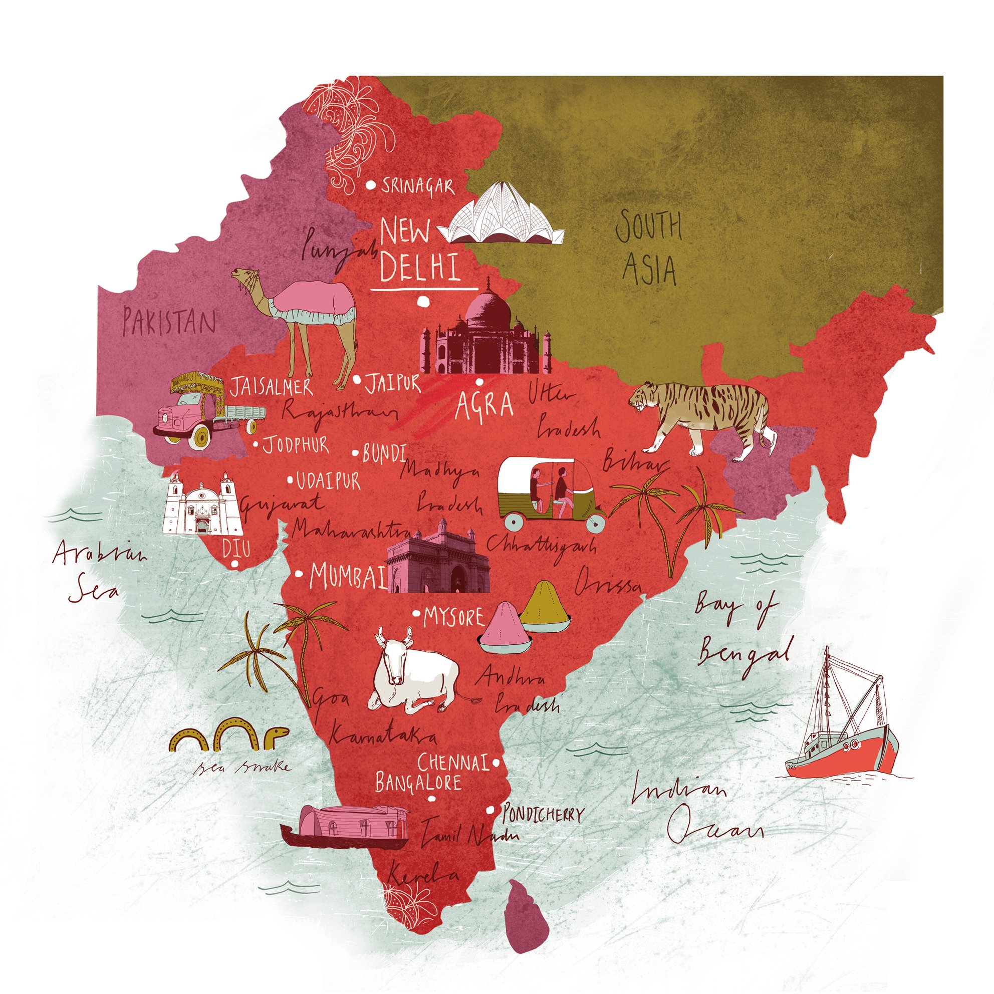 Giclée print of a map of India, edition of 100 printed on good quality décor smooth paper stock, 210gsm. Signed by the artist.