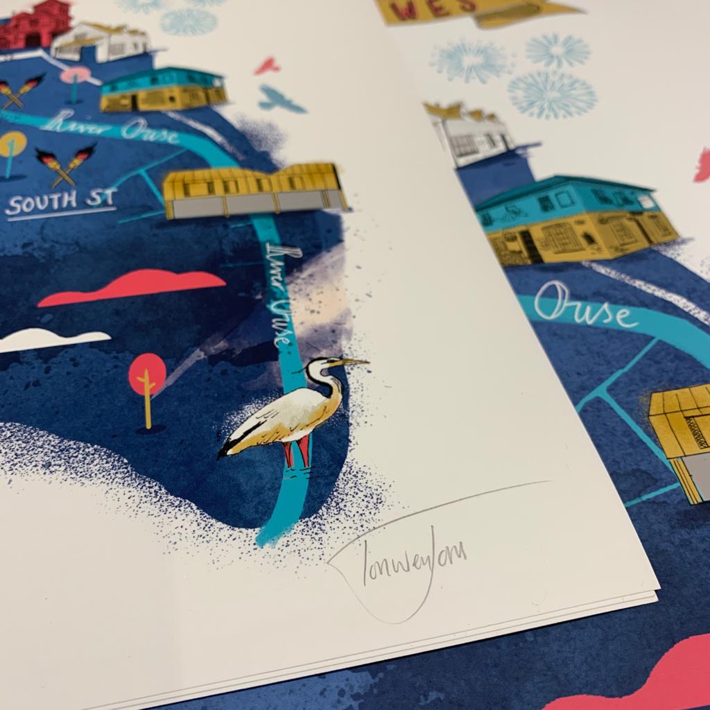 High quality print of my illustrated hand drawn map of Lewes. Printed on good quality décor smooth paper stock, 210gsm. Signed by the illustrator.