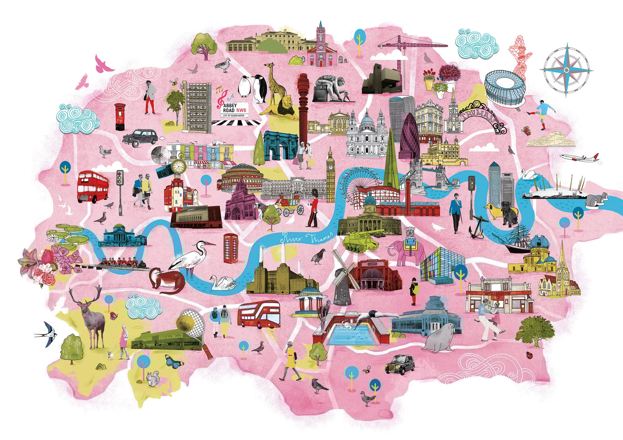 Giclée print of an illustrated map of London Town. A collaborative map with Tilly (aka Running for Crayons). Printed on good quality décor soft cotton stock, 280gsm. Edition of 250, signed by the artists.