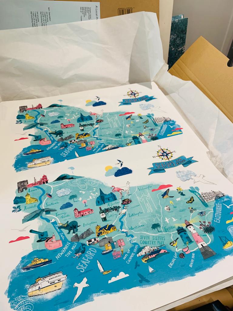 High quality print of an illustrated hand drawn map of Seaford & beyond, East Sussex.